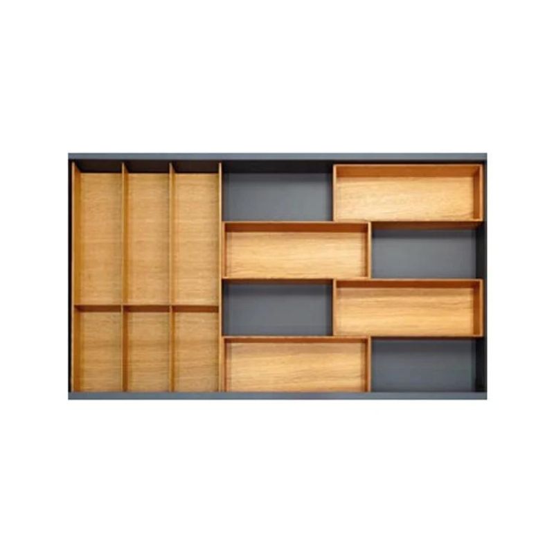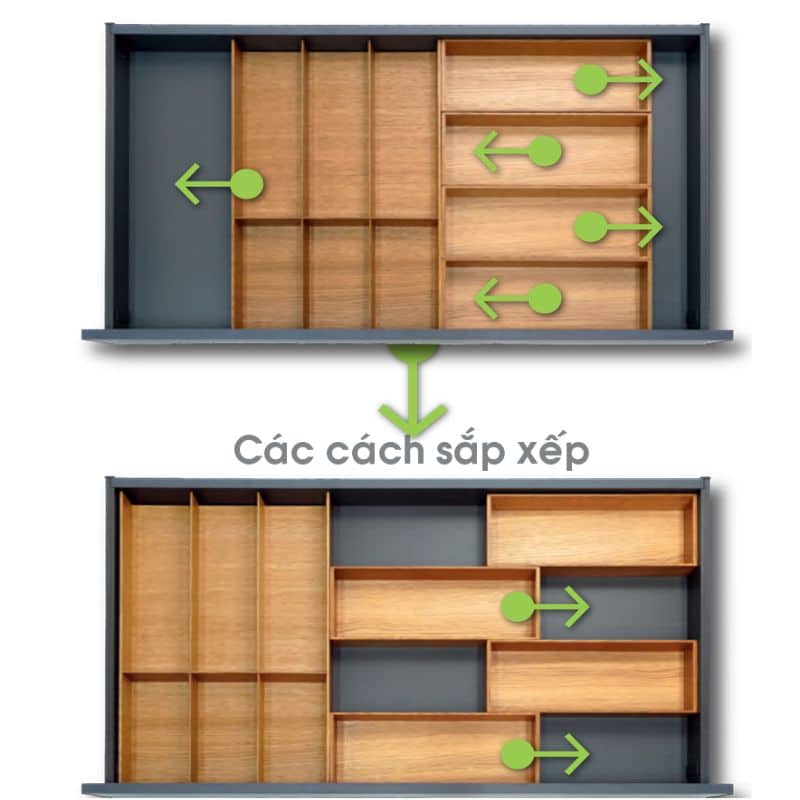 - Chất liệu: Khay/ ngăn chia được làm từ gỗ thật. Lớp đế được làm từ ván MDF 4mm