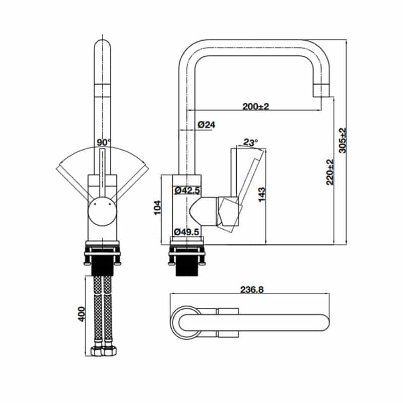 Vòi rửa bát Hafele HT21-CH1F220U 577.55.250 thiết kế kiểu chữ U